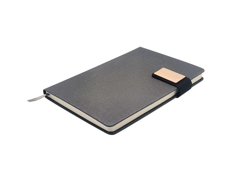 Limboo: A5 magnetic-closure notebook with ribbon marker, 88 lined sheets, and practical info pages, in Gray.