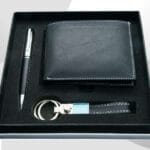 Men gift set with genuine leather wallet, keychain and leather look pen