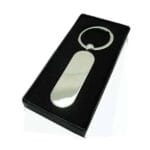 Ovoid: Shiny metal keychain with a minimal silhouette (5. 5 x 1. 8 cm), in Silver.
