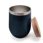 B-URT: 350ml vacuum-insulated stainless mug with eco bamboo lid; dishwasher-safe and shatter-proof, in Blue.