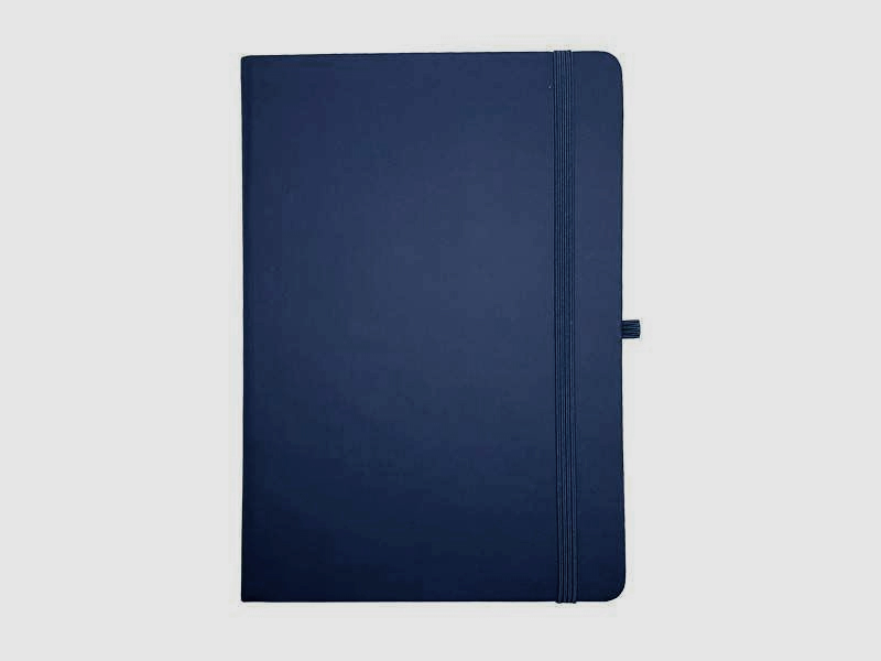 Inexmatt: A5 soft-touch notebook with pen loop, ribbon, and elastic closure, in Blue.