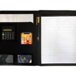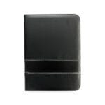 This clean, elegant leatherette A4 portfolio/folder comes with pockets on the inside cover, card slots, a pen holder, a notepad, and an attached calculator. Luxurious organising- the key to smooth functioning. Customise the cover with elegant embossing/debossing or printing of your company name/logo, and they’re ready to use!
