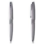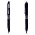 This nifty, sleek, blue body ball point pen with silver trimmings and a classy, silver spring design makes for a swanky, elegant, and trendy corporate gift.