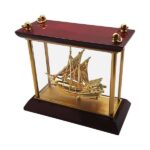 Metal/ brass model of a Traditional Arabic dhow placed in an acrylic/ wooden golden case. Making it an appropriate executive farewell gift for a retiring staff or employee recognition souvenir. Available in ready stock for wholesale as well.