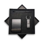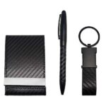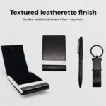 Carfi – the classic set of cardholder + keychain + pen in a set box. Make a statement with the accessories you carry. This posh-looking Textured leatherette card case gift set will do just that.