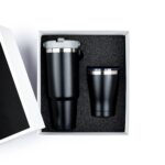 Completing the set is a sleek 350ml Wrin double-walled cup, perfect for your morning coffee or afternoon refresher. Its compact size fits easily in most car cup holders, making it ideal for commuters. The slider lid allows for quick sipping while preventing spills, ensuring your drink stays where it belongs.