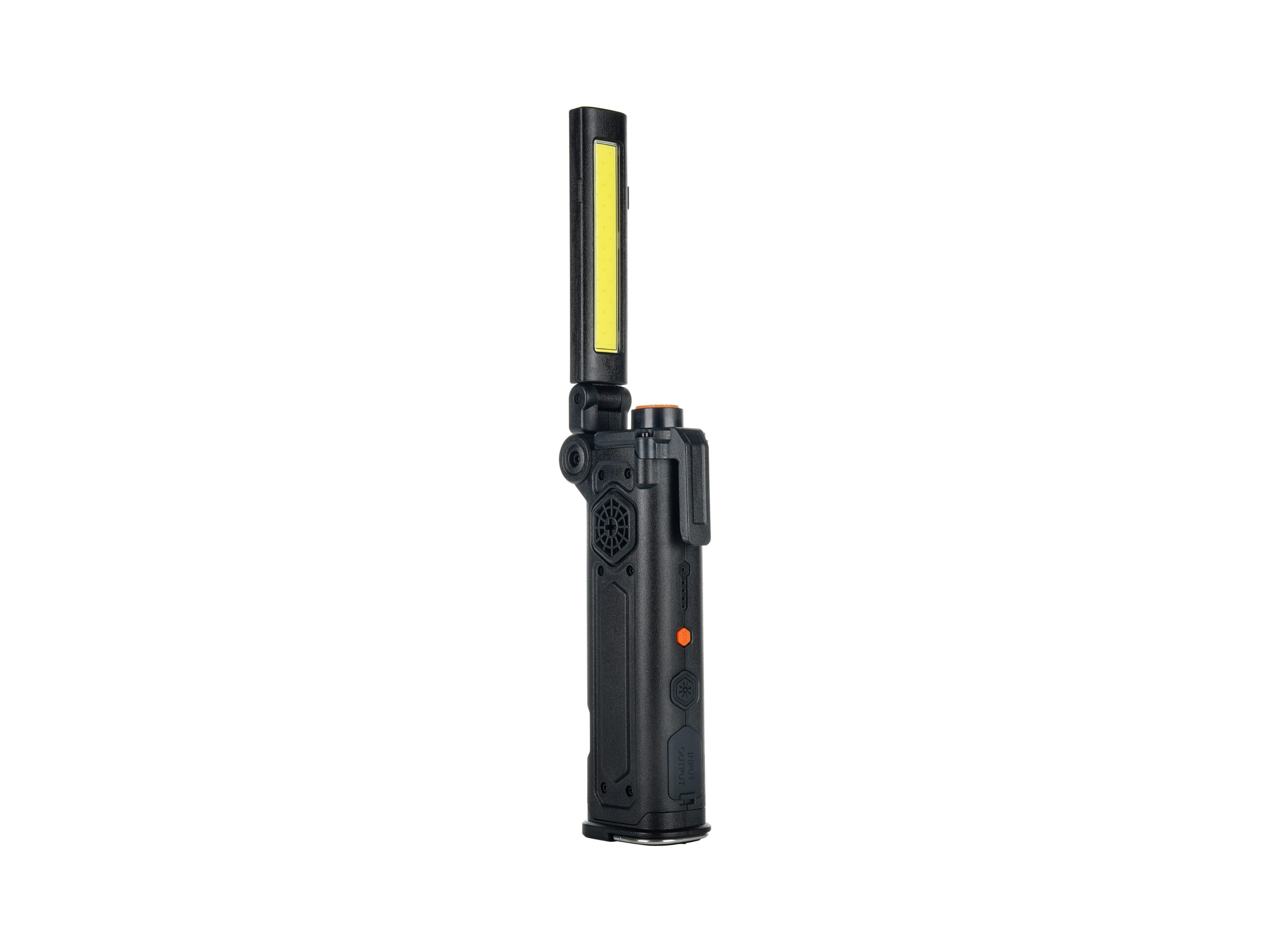 Dual Illumination Modes: 270° adjustable COB LED light (up to 500 lm) plus a stepless dimming LED flashlight (80 lm) for environmental and focused lighting.