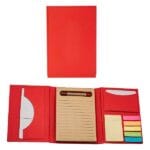 Eco friendly triple fold red colour notebook with 70 sheets along with sticky notes, rulers and an eco friendly pen included