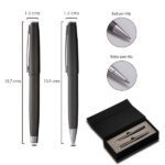 Elegance is a virtue of the gentleman. This matte grey-body pen set, consisting of a roller pen with matching ball pen, is elegant, expensive, and enchanting. Delivered in a luxurious box, this makes for an ideal high-end corporate gift. We make luxury accessible and affordable.