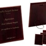 Lacquered wooden plaque suitable for direct engraving on the wood, or for putting metal plate.