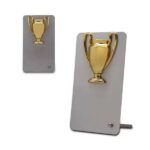 Compact & Economic metal trophy with a Metal cup shape on the top in Gold, Silver & bronze. Large branding space allows for big message.